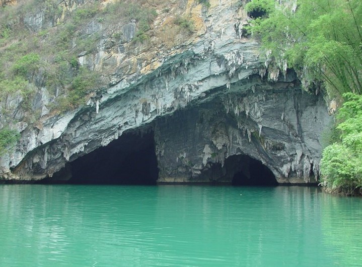 從洞中透過入口處,三角形的洞口如畫家定景框,把遠(yuǎn)處青山和近處翠巒、綠竹、田疇、水面和垂釣漁人組成絕妙的畫面,山如寶石,人若游仙,水光山色,交相襯托,令游客傾倒。 盤陽(yáng)河自巴馬甲篆鄉(xiāng)吉屯白熊洞潛入山下,形成了1500多米的伏流暗河,然后從此洞流出,是盤陽(yáng)河注入紅水河前的最后一處伏流出水口。版權(quán)所有山東聊城聊之旅國(guó)際旅行社有限公司,轉(zhuǎn)載必究!洞中鐘乳石千姿百態(tài),各肖物類,水碧石凈,光環(huán)影繞,特別是伴隨著游船的前行,在每隔兩三百米就有一個(gè)天窗而形成日光月色的光感效果及在光與影不斷變幻的時(shí)光隧道中,猶如經(jīng)歷了“三天三夜”的神奇感受而令人興奮不已。