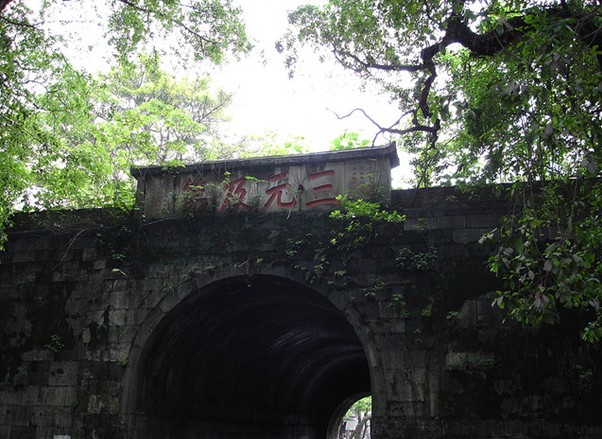 三元及第坊在靖江王城南面正陽(yáng)(端禮)門上。清代學(xué)者阮元任兩廣總督時(shí)為連中“三元”的陳繼昌所立。三元, 是省級(jí)的“鄉(xiāng)試”、全國(guó)的“會(huì)試”和皇帝親自主持的“殿試”均名列第一, 分別獲得“解元”、“會(huì)元”、“狀元”稱號(hào)的縮略。自唐代以科舉取士1000多年來(lái), 連中三元的僅13人, 清代兩百多年中僅有2人。陳繼昌是臨桂人, 把用巨石鐫刻的牌坊置于王城正門之上, 是封建社會(huì)給科舉成名者的至高榮譽(yù)。
