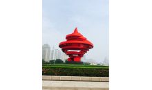 廣場(chǎng)主體雕塑《五月的風(fēng)》高30米,直徑27米,采用螺旋向上的鋼體結(jié)構(gòu)組合,以單純洗煉的造型元素排列組合為旋轉(zhuǎn)騰升的“風(fēng)”之造型,充分體現(xiàn)了五四運(yùn)動(dòng)反帝反封建的愛國(guó)主義基調(diào)和張揚(yáng)騰升的民族力量。