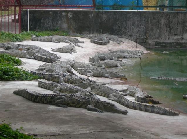 島那金碧輝煌,巍峨壯麗的泰式門樓,門前寬廣的停車場(chǎng)可一次性停放上百輛大巴,進(jìn)入大門后,有一個(gè)十分醒目、高達(dá)4米的大型鱷魚雕像——“鱷魚一家”吸收不少游客紛紛在此攝影留念,離雕像百米處,十多個(gè)鱷魚池座落在鮮花叢中、綠茵地上、池中養(yǎng)有我們祖先稱為“噴火龍”、“鮫龍”的楊子鱷、泰國(guó)灣鱷、馬來(lái)鱷、雜交鱷等四個(gè)品種,大小近千條,最小的有剛出殼的幼鱷,體型最大的有4米多長(zhǎng),重達(dá)千斤。此外還養(yǎng)有一批鴕鳥、狗熊、孔雀、猴子、大蟒蛇、駱駝、驃頭大馬供游人觀賞、合照,大仿古大炮、踏水車、水上單車等有獎(jiǎng)娛樂(lè)項(xiàng)目供游人玩樂(lè)。