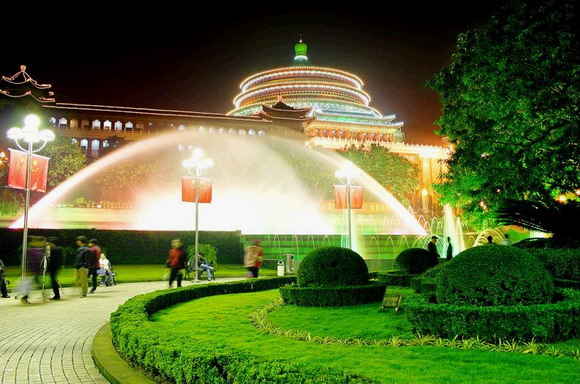 重慶人民大禮堂位于人民路學(xué)田灣,是重慶市最大的劇場(chǎng)。1950年動(dòng)工興建,1953年竣工。初名“中蘇大樓”,后改名為“西南行政委員會(huì)大禮堂”, 版權(quán)所有聊城聊之旅國(guó)際旅行社有限公司,轉(zhuǎn)載必究!1955年改為現(xiàn)名。大禮堂占地6.6萬(wàn)平方米,建筑面積2.5萬(wàn)平方米,分禮堂、南樓和北樓三部分。其中禮堂占地1.85萬(wàn)平方米,禮堂高65米。大廳高55米,內(nèi)徑46.33米。正廳內(nèi)設(shè)大型舞臺(tái)一座,四周環(huán)繞五層挑樓,四樓一底共4200個(gè)座位。大禮堂取中西合璧之建筑風(fēng)格,主體部分仿北京天壇祈年殿及天安門形式,配以廊柱式的南樓、北樓。一色綠色琉璃瓦頂,大紅廊柱,淤塞欄桿。大門為一大牌坊。整個(gè)建筑布局合諧,雄偉壯觀,雕梁畫棟,金碧輝煌。曾先后接待過(guò)蘇聯(lián)、日本、朝鮮、印度、羅馬尼亞、南斯拉夫等國(guó)的大型文藝表演團(tuán)體,是重慶市中外文化交流的重要場(chǎng)所。