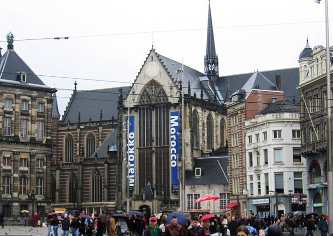 離中央火車站不遠(yuǎn)的水壩廣場(chǎng)(Dam,也叫多姆廣場(chǎng)),可以說(shuō)是阿姆斯特丹市市中心的起點(diǎn),也是整個(gè)城市最有活力的地方。這里到處充斥著咖啡的香味、搞怪的街頭藝人和人來(lái)人往的各國(guó)觀光客。