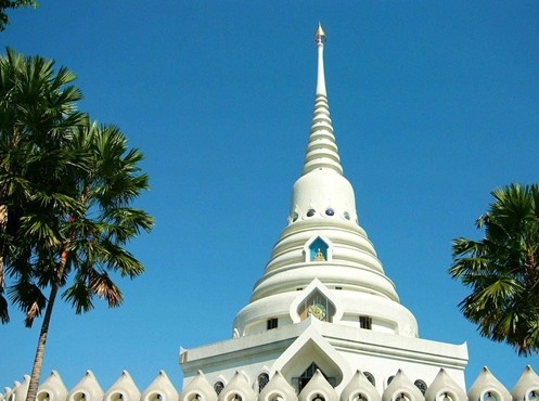 泰國人都叫它“國王廟”。泰國是佛教國家,走進泰國每一座寺廟,都可以看到刺眼的金光。彷佛泰國人把所有的黃金都慧贈給他們所虔誠膜拜的佛祖,以至于讓你懷疑泰國是不是已經(jīng)躍然成為發(fā)達國家或者黃金已經(jīng)不再是稀有金屬。九世皇廟的建筑款式與其它廟宇不同,樸素精巧,沒有其它寺廟的金碧輝煌和規(guī)模宏大,一切遵照國王諭示,以節(jié)簡和樸素為原則,蓋成了佛殿、方丈樓、僧舍、綜合樓、水池、廚房和其他必需用房子,每座建筑都是白色的,表示純潔、漂亮.泰國的九世皇廟位于芭堤雅,是專為當(dāng)今國王建造的未來行宮。泰國民眾 圣潔的舍利子塔。