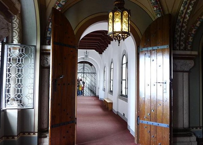 進(jìn)古堡的大門(mén)后,只見(jiàn)入口,窗戶,列柱廊等全都是半圓頭拱,這是羅馬式的建筑的特征之一。后面有一堵墻壁上的拱門(mén), 叫作盲拱,在其屋檐下及窗下,設(shè)有串連的小圓頭拱的盲拱帶,緊接著數(shù)間的國(guó)王起居室,版權(quán)所有山東聊城聊之旅國(guó)際旅行社有限公司,轉(zhuǎn)載必究!都是哥德式的建筑,并以瓦格納的歌劇作品中世紀(jì)的傳說(shuō)作為題材人物所繪制的壁畫(huà)作為主題裝飾。