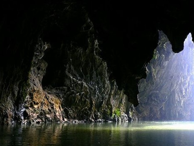 “洞天仙境”是一頗具特色的景點(diǎn),一路上,平坦的公路,兩邊是平坦的田園。規(guī)劃整齊的水田里,禾苗綠意盎然,顏色由深至淺鋪向遠(yuǎn)方,一座奇特的大山就在眼前,通過寫有“洞天仙境”的大門樓就進(jìn)入到了停車場,再行數(shù)十步,有一明鏡般的小湖映入眼簾清漸見底的湖水可見魚在游動,湖兩邊停放著幾只小船。洞口有一巨大的鐘乳石向下垂吊,山洞口就像龍口,垂吊的鐘乳石就是一條龍利,從藤修蔓垂的巖洞口蕩槳而入,木槳擊破水面的輕微聲響驚出數(shù)十只燕子,版權(quán)所有山東聊城聊之旅國際旅行社有限公司,轉(zhuǎn)載必究!在眾多奇姿怪態(tài)的鐘乳間穿掠,越發(fā)顯出洞穴的幽奇。穿過一段狹窄的地方進(jìn)入到洞內(nèi),視野豁然開朗,一個巨大的山洞有樹木,綠草、野花,抬頭仰望,又有一個天,這不是夢吧!洞中有天,洞天相連,洞中的天一長一短,酷似一個巨型的感嘆號,讓人嘆為觀止,細(xì)心觀察那個長的還真似臺灣島的地理版圖,真是讓人驚嘆自然造物的神奇。