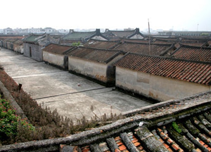 村寨建于清乾隆初年,屬三街六巷皇城建筑,是舊時潮陽大戶人家的住所。它的長寬均為112米,占地面積約一萬四千平方米,共有22座宅子,四周建有兩房一廳三護(hù)寨墻屋三十六套。為了防備海盜流寇,寨的四角還建有四座更樓。