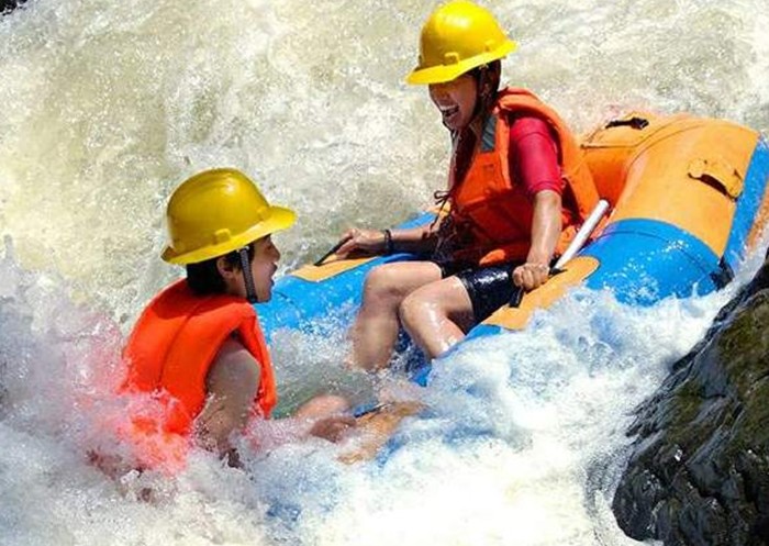 清遠(yuǎn)筆架山峽谷漂流的一個(gè)特別之處是一年四季都可漂。原因是筆架山的漂流河建設(shè)有水源控制壩,它可以通過(guò)對(duì)水源的控制,保證山間突發(fā)洪時(shí)的漂流安全,并保證枯水季節(jié)漂流的適量水位。安全是漂流游人最關(guān)心的,筆架山的峽谷漂流在漂流全程的每一個(gè)驚險(xiǎn)點(diǎn),都安排有安全員守點(diǎn),以幫助游人順利過(guò)灘。 筆架山峽谷漂流分兩段,上游是勇士漂,下游為逍遙漂,采用的漂流船都是2人橡皮艇。逍遙漂全長(zhǎng)6公里,需時(shí)約2個(gè)小時(shí),這段河道的狀態(tài)較為和緩,落差一般在1米以下,正常水深40-50公分,各種灘跌洄潭,均在大眾能夠接受的范圍內(nèi),適合各種年齡層次的人玩。不過(guò),逍遙漂也有幾處險(xiǎn)灘,都是有驚無(wú)險(xiǎn)的。兩岸青山綠水,在逍遙中一邊享受愜意的漂流感覺(jué),一邊自由自在地欣賞溪河美景,流連于碧水青山、綠蔭白瀑之間。玩逍遙漂只需穿帶救生衣。而參加勇士漂就驚險(xiǎn)得多了。