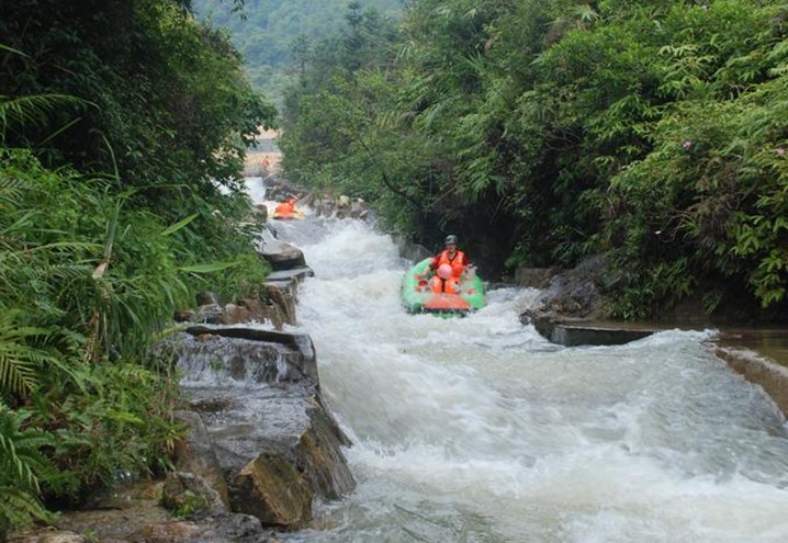 清遠(yuǎn)黃龍峽漂流河道兩岸群山奇石綿延,植被蔥翠,郁郁蔥蔥,游客穿石繞壁、凌波逐浪之間亦免除陽(yáng)光暴曬之苦,全程舒適寫意,充分領(lǐng)略大自然生態(tài)之壯美。清遠(yuǎn)黃龍峽漂流全程約1.5小時(shí),每日接待量約8000人次,游客可乘景點(diǎn)中巴或旅游大巴直接到達(dá)漂流起點(diǎn),大大縮短了等待時(shí)間。它是全國(guó)唯一的雙S回旋彎賽道及多個(gè)精心賽道設(shè)計(jì)讓游人真正體驗(yàn)到挑戰(zhàn)自我的樂趣,而整個(gè)河道經(jīng)年初精心整葺,煥然一新,水質(zhì)大幅提升之余亦做足安全保障。