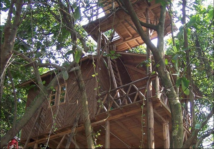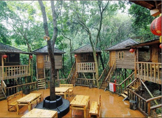 樹屋村,上古人類的家,是我們?nèi)祟愖嫦冗€未步出森林前賴以遮風(fēng)擋雨、防御野獸侵犯的窩。如今,九州驛站的樹屋村,在還原古人類居住文化的特征上,融入了現(xiàn)代的養(yǎng)生休閑文化而成為驛站的重要特征。身處樹屋村,最能感動(dòng)人的除了古樸而又獨(dú)特的住宿設(shè)施外,感覺更多的是茂盛森林里的原始?xì)庀⒑屯恋氐姆枷悖c隔窗相望的雀鳥、昆蟲、松鼠等生命為伴才是建造樹屋、入住樹屋的真正意義。
