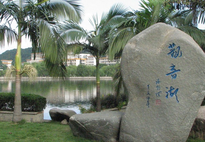 觀音嶺位于碣石鎮(zhèn)北與金廂交界之處,因嶺上有觀音禪淙堂(水月宮)而得名。嶺下海灘長(zhǎng)達(dá)8km,海中距岸lOOm處水深才1,5m,距岸200m水深2m。沙白、水清、浪小,是一個(gè)理想的天然游泳海灘。嶺前奇山眾多,有周恩來(lái)、葉挺同志當(dāng)年搶渡香港下海處的龍石,汕尾市境內(nèi)最大的摩嶺刻“鎮(zhèn)海石”,明欽差大臣成大猷、鄭岳山刻“鎮(zhèn)海石”,“揚(yáng)威止水”于鎮(zhèn)海石上。該處以“神、海、沙、石”兼?zhèn)涠劽袊?guó)書(shū)法家協(xié)會(huì)主席啟功先生題“粵東旅游黃金海岸”于石上。