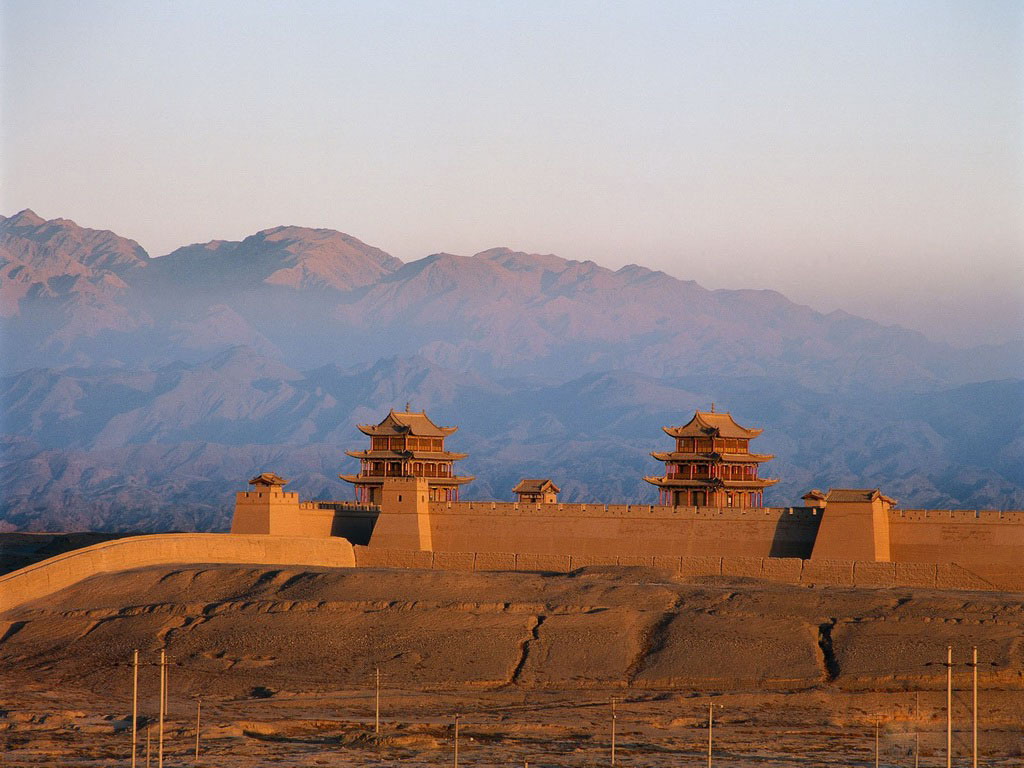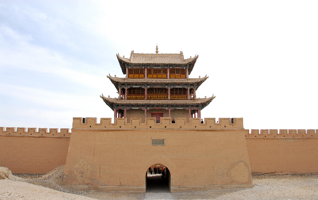 嘉峪關(guān)長城在嘉峪關(guān)市西南隅, 因建于嘉峪山麓而得名,是明朝萬里長城西端的終點(diǎn), 建于1372年。關(guān)城平面呈梯形, 面積33500余平方米, 城墻總長733米, 高11.7米。城樓東、西對(duì)稱, 面闊三間, 周圍有廊, 三層歇山頂高17米, 氣勢(shì)雄偉。關(guān)城四隅有角樓, 高兩層, 形如碉堡。