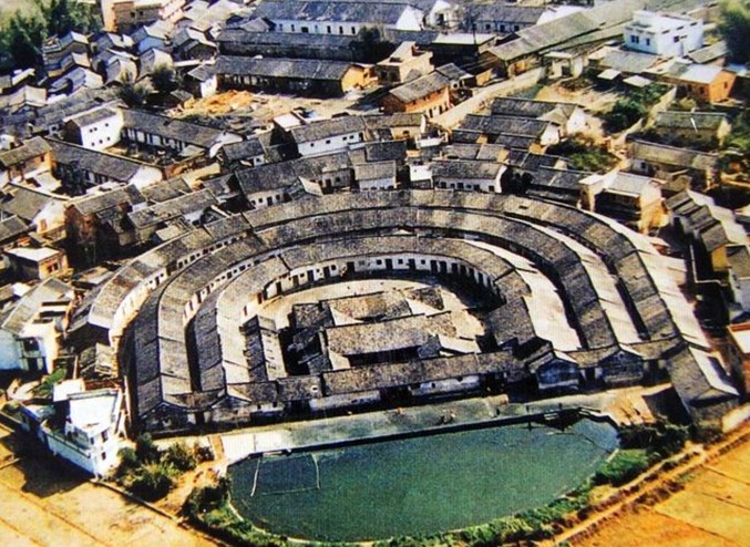 該圍屋坐西南朝東北,原為依山面水,地勢前低后高,取“步步高升”之意。它由內(nèi)外兩圍環(huán)套而成,內(nèi)呈方形,外呈梯形,內(nèi)外圍各有四角樓一望樓,倒座東北面三開門,中心為府第式三堂兩橫,前有禾坪、月池。圍屋內(nèi)有300多間居室,最多可容納一千余人。鶴湖新居集生產(chǎn)、生活、防御等多種功能于一體,龍崗羅氏家族曾在此聚族而居近200年。