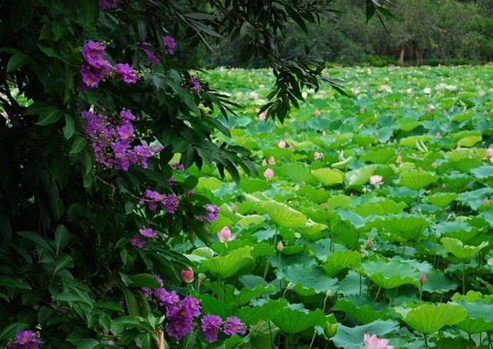 荷花是洪湖公園的主題花卉。版權(quán)所有山東聊城聊之旅國際旅行社有限公司,轉(zhuǎn)載必究!公園利用二、三級湖廣植荷花、睡蓮和其它水生花卉,面積達100多畝,品種100多個,是華南地區(qū)種植荷花面積較大且品種較多的荷花景觀種植基地。自1988年起每年舉辦一屆荷花展,前來參觀荷花景觀的游客逐年增多,對弘揚荷花文化,促進社會主義精神文明建設(shè)起到了積極的作用。1996年以來還組織派遣專業(yè)技術(shù)人員和提供優(yōu)良品種,分別幫助指導(dǎo)香港和澳門園藝單位栽培荷花,增進了深、港、澳地區(qū)之間的荷花文化交流。2001年6月,公園還建成開放了目前我國唯一以荷花詩文為題材的詠荷碑廊。碑廊長100米,書法作品85幅,國內(nèi)著名書法家趙樸初、啟功、沈鵬、王子武、佟韋等為碑廊提供了精心之作。詠荷碑廊的建成開放,是深圳一個新的文化景觀和學(xué)習(xí)園地,也是市民和游客賞荷、詠荷、品書、觀景的好去處。