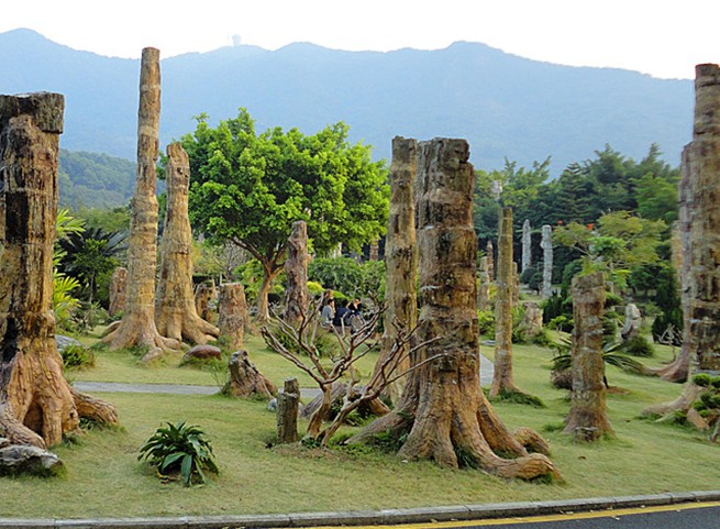 深圳仙湖化石森林籌建于1997年,占地30多畝,由400多株木化石聳立形成化石森林景觀。這些木化石主要從遼寧、新疆、內(nèi)蒙古等地引進。木化石又稱硅化木,是石化了的樹木枝干化石。在距今一億五千萬年前的中生代侏羅紀,由于地殼運動或火山爆發(fā),古代森林瞬間被泥沙碎石或火山熔巖所掩埋,樹木中的有機質(zhì)逐漸為二氧化硅所取代,形成了與石頭一樣的硅化木。