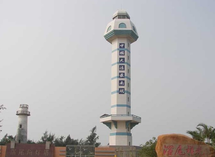 徐聞燈樓角位于湛江市徐聞縣西南海濱,三面環(huán)海,東為角尾灣,南與海南島澄邁縣相望,西臨東場灣,有一角狀沙灘前伸入海。燈樓角自北向南楔入瓊州海峽約3公里,扼北部灣與瓊州海峽進出口,是瓊州海峽航道的要沖,也是中國海岸的最南點。該角面積約3000平方米。這里有銀白的沙灘,玲瓏的貝殼,洋人留下的房屋、水井遺址,并有挺拔的綠椰,葳蕤的木麻黃,婆娑的路兜勒,悅目的閑花野草。