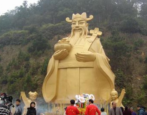 聚寶天地和君子園兩大部分:進入由金磚作墻、兩錠巨大金元寶托起一串金燦燦的古錢幣的景區(qū)大門,便是聚寶天地,走過九宮八卦飛星圖轉(zhuǎn)運壇。隔湖可見一尊全國最大的財神塑像,手捧聚寶盆向人們惠賜財運,轉(zhuǎn)身而望,兩塊寶錠與一座青山組成的天然巨大寶錠遙遙相對應(yīng),何其相似乃爾!環(huán)湖邊是一條由一個個金錢鋪就的丁財路。