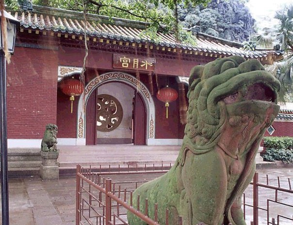 水月宮,位于肇慶市星湖中心區(qū)石室?guī)r南麓,北靠崧臺(tái),面臨紅蓮湖,曾因立有高6米、重7噸的銅鑄佛像摩利支天而聞名省港澳和東南亞各國(guó)。 水月宮原為觀(guān)音堂,建于明嘉靖年間(1522-1566年),但“頻年為風(fēng)雨所折”,后得官民“樂(lè)于趨事”,遂于明萬(wàn)歷二年(1574年)冬“辟?gòu)V升高,壯址展基”。 據(jù)傳,觀(guān)音能顯現(xiàn)32種不同的應(yīng)化色相,其中以“水月”色相最為高潔,因名“水月宮”。