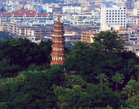 阜峰又名煙墩山,位于市區(qū)中心。阜峰文塔就是山上的一座七層八角的磚塔,又名煙墩花塔,是中山市新十景之一。該塔明朝萬(wàn)歷三十六年(1608年)興建,經(jīng)歷了380多年滄桑。塔高24.5米,內(nèi)有石級(jí)直登塔頂,可四周眺望,石岐城區(qū)風(fēng)光盡收眼底。1983年,中山縣石歧鎮(zhèn)人民政府重修古塔,塔身增設(shè)燈飾,晚上華燈初上,更顯燦爛輝煌。阜峰文塔建于明代萬(wàn)歷三十六年(1608年)九月,知縣蔡善繼創(chuàng)建。