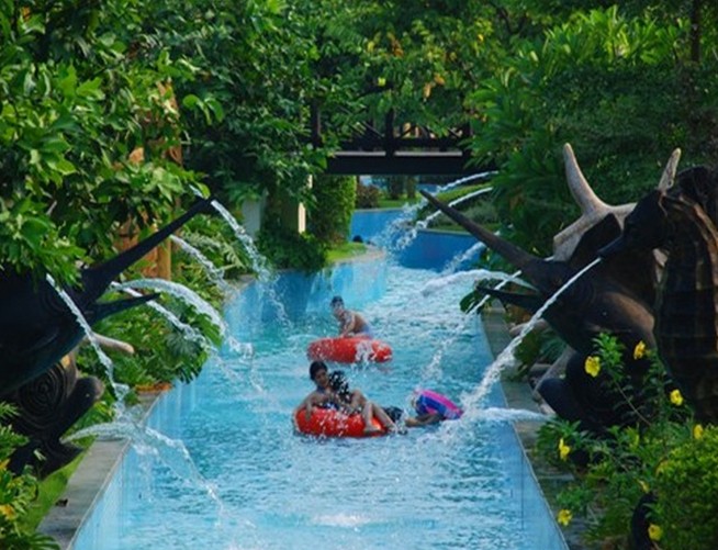 廣東最大的原生態(tài)熱帶雨林主題游樂(lè)區(qū),擁有各種不同的水滑道和玩水活動(dòng)。當(dāng)屋頂?shù)拇竽就把b滿水時(shí)就會(huì)傾倒而下,讓您享受如瀑布般的清涼快感!特別為兒童設(shè)計(jì),擁有多套適合小朋友和家庭游玩的大小型水娛樂(lè)設(shè)施,既是孩子們的樂(lè)園,也是家庭放松的理想之所。