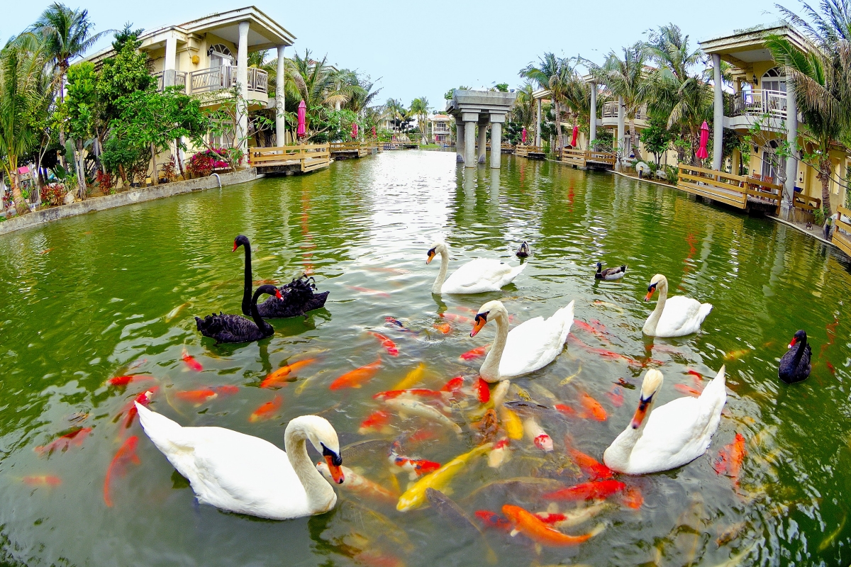 天鵝湖庫(kù)區(qū)南北長(zhǎng)8公里,東西寬5公里,總面積近40平方公里,是杭州西湖面積的8倍;堤壩總長(zhǎng)71公里,聊城旅游網(wǎng)版權(quán)所有聊城聊之旅國(guó)際旅行社有限公司,轉(zhuǎn)載必究!設(shè)計(jì)庫(kù)容1.14億立方米,年吞吐量2.2億立方米,是全國(guó)最大的濱海平原水庫(kù)。庫(kù)西側(cè)有棧道直通湖心的太陽(yáng)島。太陽(yáng)島分為4個(gè)部分,由"丁"字形棧道連接。第一部分位于進(jìn)島東西棧道南側(cè),主景為寶塔山及長(zhǎng)城等;第二部分是位于東西棧道東端的中心島,是太陽(yáng)島中面積最大的主景區(qū),島上景點(diǎn)眾多,亭臺(tái)樓閣參差錯(cuò)落,假山花圃錦繡迷人;第三部分是自中心島往南由棧道通連的南海景區(qū),主景是"天涯"、"海角"等;第四部分是自中心島往北由棧道通連的北海景區(qū),主景是北海白塔、荷蘭風(fēng)車(chē)、鴕鳥(niǎo)園等。中心島設(shè)有游船碼頭,可乘游艇或摩托艇漫游湖區(qū)。有4個(gè)生物島布置在湖的4個(gè)角部。島上有鳥(niǎo)類(lèi)百余種,其中珍禽有白天鵝、灰天鵝、黑天鵝、仙鶴等。湖中有魚(yú)類(lèi)20余種,其中數(shù)量較多的有鯉魚(yú)、鯽魚(yú)、草魚(yú)、鲇魚(yú)、黑魚(yú)等。