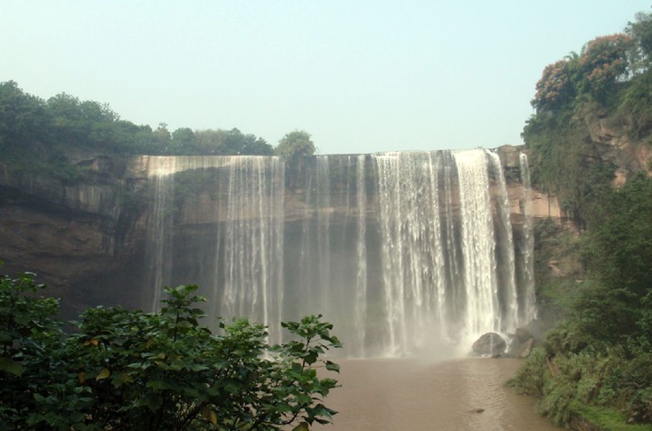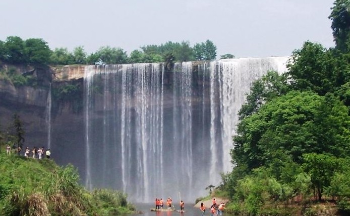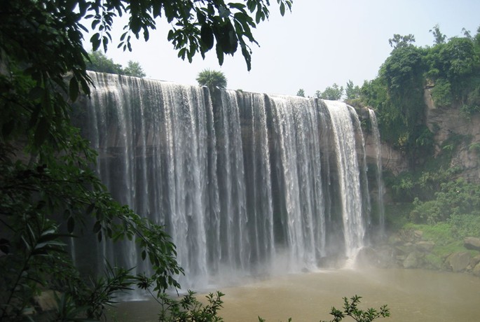 青龍瀑布(Qinglong waterfall)位于萬州區(qū)甘寧鄉(xiāng),距萬州城區(qū)30公里,景區(qū)面積60.13平方公里。這里是三國時期大將軍甘寧的故里。經(jīng)過專家測算,青龍 瀑布高 64.5 米,寬 115 米,比著名的黃果樹瀑布尚寬 19 米,是名副其實的亞洲之最。瀑布面積達7417.5平方米,是重慶市級風(fēng)景名勝區(qū)。該地區(qū)屬于典型的喀斯特地貌,山石陡峭,森林茂密。該瀑布的獨特之處不僅僅是因為它的雄偉壯闊,而是瀑布的走向是呈弓形,這使得瀑布成為名副其實的水簾洞。沿著瀑布內(nèi)部的小道前行,從瀑布里面眺望外面的景色,另有一番滋味。瀑布之下有一約 2000 平方米的石洞,造型奇特,令人神往,是游人坐洞觀瀑的絕佳去處;瀑布下游水草鮮美,落英繽紛,儼然陶翁之桃花源也。不遠處是甘寧將軍墓和甘寧雕像。青龍瀑布上游是甘寧水庫,是垂釣、蕩舟的好去處。對比中國其他地區(qū)的風(fēng)景名勝,青龍景區(qū)在自然景觀與人文景觀上都毫不遜色。