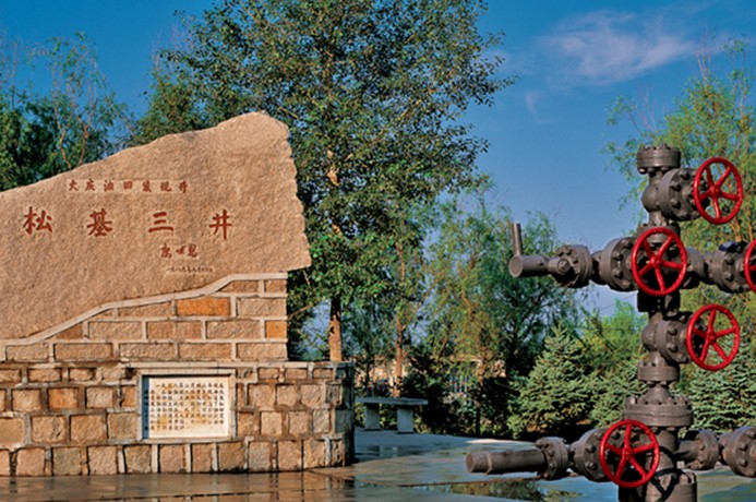 1958年9月,松遼石油勘探局最早提出在肇州縣“大同鎮(zhèn)電法隆起”上安置“松基三井”的井位。1959年9月26日下午4時,松基三井噴出了工業(yè)油流,從此中國石油工業(yè)歷史上掀開了新的一頁。現(xiàn)在的松基三井紀念碑位于第五采油廠,是為紀念大慶油田發(fā)現(xiàn)30周年,由中國石油天然氣總公司于1989年9月26日重新建成的。石油工業(yè)老領導、原中顧委常委康世恩同志題寫碑文:“大慶油田發(fā)現(xiàn)井——松基三井”。
