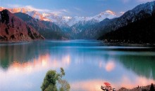 橫亙?cè)谛陆辈康陌柼┥叫蹅延^,其主峰友誼峰終年被冰雪覆蓋,是我國(guó)海拔最低的現(xiàn)代冰川之一,喀納斯湖就位于風(fēng)景秀麗的友誼峰南坡,面積約25萬(wàn)公頃的喀納斯國(guó)家保護(hù)區(qū)內(nèi)。