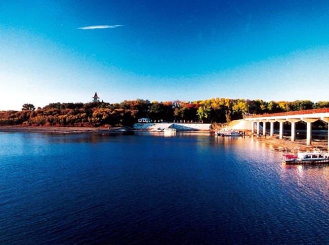 鶴崗名山島位于鶴崗的蘿北名山旅游區(qū)包括名山島和名山沿江公園。名山沿江公園總長有2000多米,分九大景區(qū),45個景點,人文氣息與自然景色兼?zhèn)洹:邶埥牡拿綅u距名山鎮(zhèn)1.7公里,是國家3A級旅游景區(qū)。它緊臨國界線,處在大江之中,南側距名山鎮(zhèn)江岸200米,北面與俄羅斯的阿穆爾捷特江岸相距1000米。江水環(huán)繞,古木森森,鳥鳴嚶嚶,野趣橫生,一派質樸、粗獷、天然無飾的自然生態(tài)風光。名山島為江水中沖積而形成的島嶼,形成于清代末年,民國初期已成島嶼。小島四周江水環(huán)繞,島上植被保護完好。水曲柳、胡桃楸、黃波欏等許多名貴樹種遮天蔽日,形態(tài)各異。林下的灌木叢中,山葡萄纏繞,形成了一派質樸粗獷、天然成趣的自然生態(tài)景觀。島上土質肥沃,樹木成林,植被茂密,生長著樺、柳、榆、楊等多種闊葉樹木及狐貍、黃鼬、貂子等許多小型雜食動物,并且還是鷺鷥等水禽夏候鳥的棲息地。經(jīng)多年的江水沖刷,岸邊坍塌,沙灘擴大,江汊增寬,此島面積雖有縮小,因四周長有茂盛的柳樹,對島嶼起到了保護作用,故而此島的面積變化不大。名山島外形酷似一條龍,相傳黑龍江的龍王——禿尾巴老李曾在此抗擊惡龍——白龍,后臥身于此,此島又稱黑龍島。島上樹木茂密,生長著水曲柳、黃菠蘿等十余種溫帶闊葉樹種。自西向東分為誰上游覽區(qū)、綜合游覽區(qū)、別墅區(qū)、演通講寺、園林狩獵區(qū)五大功能區(qū)。有水上游樂園、了望塔、猶太人風情園、黑龍廟、俄羅斯風情園、狩獵場等眾多景點。島上沙灘平緩,是天然浴場,又可覽異國風情。龍江三峽國家森林公園位于小興安嶺東南麓,中俄界江中段的右岸,占地8569公頃,公園主要由界江、河流、峽谷、山嶺、森林、濕地等各種自然景觀和人文景觀構成,有水路和陸路兩條游覽線路。黑龍江金三峽西起嘉蔭河口,東經(jīng)滾突嶺山下到太平溝興東村,水路全長80公里。在這里,黑龍江又形成三段峽谷,即龍門峽、金龍峽、金滿峽。在金龍峽中,又含三段小峽谷,即龍頭峽、龍騰峽、龍鳳峽。由此組成了“大峽套小峽,峽中又有峽”的奇特風光,堪稱是黑龍江中游景色最為秀美、最為獨特的自然山水畫廊。