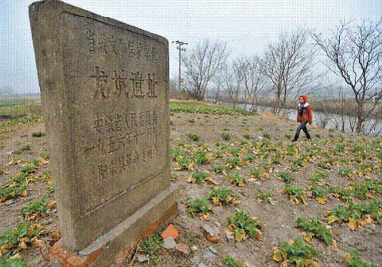 在安徽省肥東縣龍城鄉(xiāng)龍城村。遺址東、西、北三面有3-4米高的土壟,勘查有夯土層,為舊城墻倒塌后所形成。南面仍可識辨城垣舊址。城垣長600米,寬420米。舊城址內(nèi)有漢代斷磚、碎瓦、殘?zhí)掌约熬哂猩讨軙r期特征的遺物。舊城址外幾座村莊多有古墓群,曾發(fā)現(xiàn)漢至南北朝時期石室、磚室墓群。為省級重點文物保護(hù)單位。
