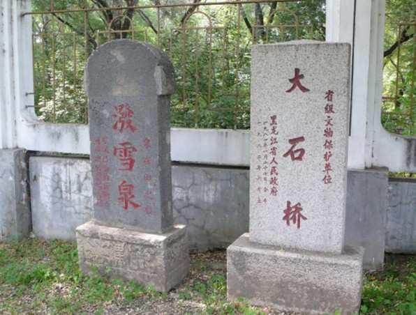 位于寧安市區(qū)西雞陵山下,橫跨大溝壑上。為清代通向遼、吉要道。此橋為黑龍江地區(qū)僅有的清代石拱橋。橋東有潑雪泉,泉水流入溝壑,經(jīng)大石橋,南注牡丹江。始建于后金天聰八年(1634年),原系板筑;后改石筑,為單曲拱大橋,全長25米,寬4.5米,高7.3米.橋面鋪石,兩側(cè)設(shè)石欄桿,上雕刻石桃,欄間嵌有刻成草葉紋和云卷紋飾的石板。建國后曾進(jìn)行維修。