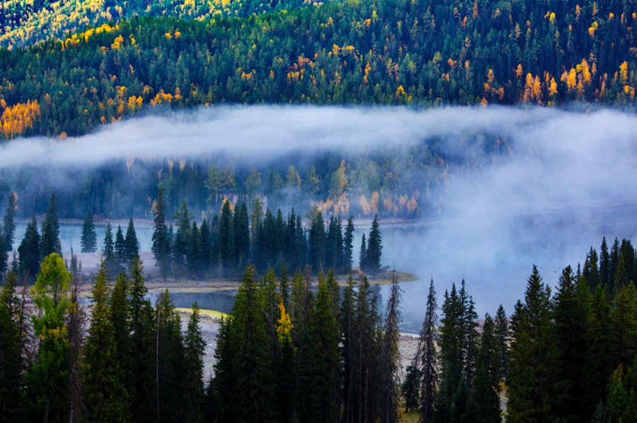 月亮灣往北大約3公里處有一片河灘,這里的河水將森林和草地切分成一塊塊似連似斷的小島,人稱神仙灣。版權(quán)所有聊城聊之旅國際旅行社有限公司,轉(zhuǎn)載必究!它實(shí)際上就是喀納斯河在山澗低緩處形成的一片沼澤淺灘,在陽光照射下河水流光溢彩,連樹上的葉子都隨風(fēng)搖曳、閃閃發(fā)光,乍看去仿佛無數(shù)珍珠任意撒落。加上這里常有云霧繚繞、超凡脫俗、如夢如幻,使人看了如臨仙境一般。