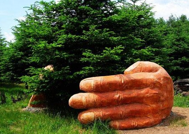 景區(qū)以寓意的手法,展示著荒涼的沙漠、干枯的老井、破舊的車輪、動物的尸骨以及一雙大手環(huán)抱著的一棵幼苗,與周圍表達(dá)生命永恒的主題形成強(qiáng)烈的反差。這里警示人們,掠奪資源、破壞環(huán)境、過度耗費(fèi)自然生命帶來的悲慘結(jié)局,版權(quán)所有山東聊城聊之旅國際旅行社有限公司,轉(zhuǎn)載必究!警示人們,珍愛自然、珍愛生命、珍愛生態(tài)就是珍愛我們自己。園林附屬設(shè)施也以貼近自然為基調(diào)。有泥制的木板、木凳、木樁、樹根,足可以假亂真,保持與整體風(fēng)格協(xié)調(diào)一致。