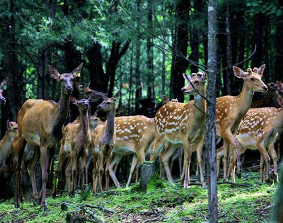 金山鹿苑位于小鎮(zhèn)東南方向5千米處,群山環(huán)繞,景色怡人,鹿場采取半開放式,幾百頭馬鹿,天山馬鹿和梅花鹿在山泉邊嬉戲,大密林中徜徉,常年集山川大地之靈氣,蓄花草樹木之精華,與野生鹿并無二致。產(chǎn)品鹿胎膏,鹿心血,鹿鞭,鹿尾等都是上好的藥材和補品。金山鹿苑位于金山屯區(qū),占地56公頃,腹地是大半個山頭,山間有草坪、柞樹、溪流。