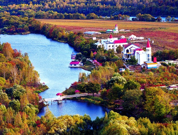 臨近回龍灣,只見具有古典建筑風格,版權所有山東聊城聊之旅國際旅行社有限公司,轉(zhuǎn)載必究!上書“回龍灣山莊”幾個大字的門樓赫赫然映入眼簾。沿石甬路來到渡口-----“湯旺第一渡”,是進入回龍灣山莊的惟一渡口。位于山莊牌樓東500米處,在河兩岸各有一座造型別致的懸索墩臺,上有振翅飛的大型雕塑天鵝,將100余米鋼纜銜于口內(nèi),東拉西扯,蕩悠悠橫于碧波之上。木制懸浮碼頭,隨水勢起落調(diào)整高低。鐵殼雙舟并聯(lián),每次可載60人左右,雙舟在河水沖擊下,滑輪滾動,兩岸擺渡,既安全又充滿情趣,真可謂舟在水中游,人在畫中走。渡過百余米寬的湯旺河,棄舟登岸,映入眼簾的是刻有黑龍江省副省長、原伊春市市委書記王東華同志的題詞“青山無限美,碧水寄真情”的石牌。再往前走就來到了回龍灣正門,正門上書“湖山勝境”,言外之意,跨入此門才算真正來到回龍灣山莊。沿著由水泥預制板鋪成的小路往前走,展現(xiàn)在我們面前的是一尊造型獨特、妙趣橫生的“黑龍騰天”雕塑。黑龍眼望長空,尾巴翹立,欲騰飛離去,卻又顯出無限的眷戀之情,意味著不愿離開這美麗的地方。臨清別墅:屬回龍灣風標志性建筑,臨河而建,外觀為典型的歐式風格。哥特式的紅色尖頂及拜占庭式的主體框架,配以乳白色的歐式風格。哥特式的紅色尖頂及拜占庭式的主體框架,配以乳白色的白色的墻壁、碩大的藍色落地窗,顯示出浪漫的一國情調(diào),其每層風格各異。一樓為會客室,寬敞明亮,一幅巨大的太公垂釣木雕附于廳壁,角落有日式內(nèi)室稱為“和寮”;二樓的“漢閣”正墻上懸掛一幅精心裱褙的字軸,上面完整地記敘了回龍灣開建設歷史;三樓為“獵舍”,彷舊時獵舍居室風格裝修,古樸典雅,耐人尋味。蒙古村落:位于回龍灣南于東皋臺隔灣相望,有五座敖包組成。錯落有致地排列于萋萋芳草中。一架勒車閑置在包前,幾只散養(yǎng)的牛羊在沒膝深的野草叢里悠然吃草,裊裊炊煙從敖包頂端升起.不時有身著鮮艷民族服裝的姑娘手托著香氣撲鼻的菜肴出入包中,儼然成吉思汗的子孫們活生生的場景.此時那首有名的"敕勒川,陰山下,天似穹廬,籠蓋四野,天蒼蒼,野茫茫,風吹草低見牛羊"的 《敕勒歌》便會自然涌上腦海.敖包內(nèi)裝飾極具民族風格,是游人就餐之地.熏羊腿、燒牛寶、手把肉、烤全羊等佳肴,其味美純正,風味十足,定會使你大飽口福.