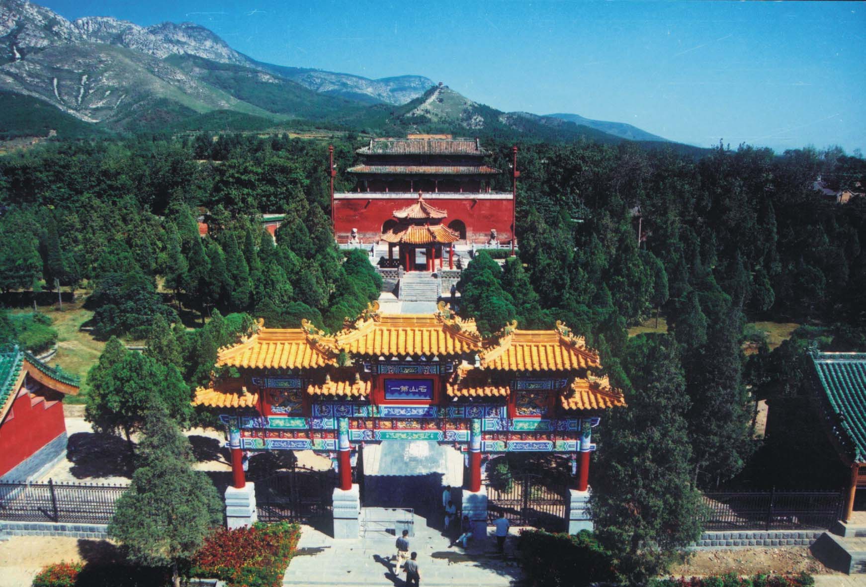 中岳廟即指嵩山中岳廟,位于河南嵩山南麓的太室山腳下,距河南省登封市城東4千米。它背倚黃蓋峰,北依黃蓋峰,面對(duì)玉案山,西有望朝嶺,東有牧子崗,群山環(huán)抱,布局謹(jǐn)嚴(yán),規(guī)模宏偉,紅墻黃瓦,金碧輝煌,總面積11萬平方米,為中州祠宇之冠,也是五岳中現(xiàn)存規(guī)模最大、保存較完整的古建筑群,也是河南省規(guī)模最巨、最完整的古代建筑群。如此宏大而又幽雅莊嚴(yán)的廟宇在全國也是罕見的。