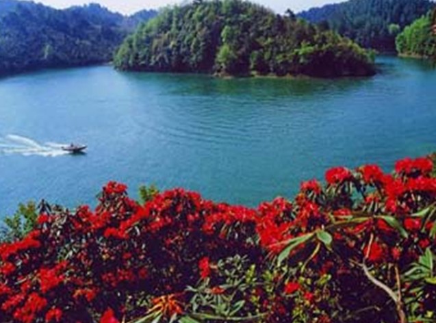 杜鵑湖風景區(qū)位于貴州省長順縣境內,屬古夜郎國政治中心,與貴陽、安順成金三角之勢,交通便利,東距貴陽102公里,西達安順85公里,與黃果樹、龍宮、紅楓湖等著名景區(qū)共同構成貴州西線旅游環(huán)線。杜鵑湖風景區(qū)以長達7公里的人工湖為主體,四周群山環(huán)抱,湖面煙波浩淼,湖水碧綠如鏡,山頂煙霧繚繞,山下微波拂岸。杜鵑湖的森林覆蓋率近90%,生長著原生態(tài)的常綠杜鵑花。每年2至5月,杜鵑花漫山遍野地繞湖綻放,5至7月,楊梅喜獲豐收,7至9月,滿山的野毛栗,各種香菌、眾多的候鳥布滿湖的周圍。