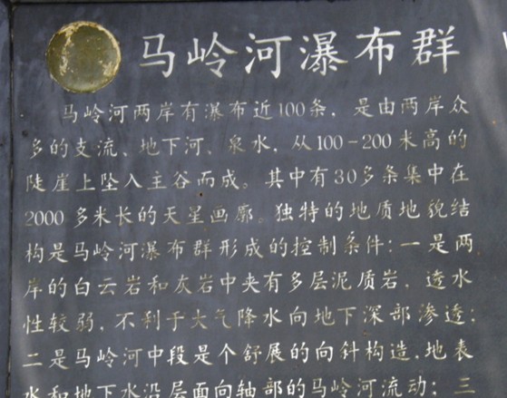 中國(guó)最大瀑布群,這里石峰成林,壯闊雄偉;峽谷成河,奇險(xiǎn)幽深。它是國(guó)家最近公布的重點(diǎn)風(fēng)景名勝區(qū)之一。馬嶺河發(fā)源于烏蒙山脈,流入黔、桂交界的南盤江,長(zhǎng)達(dá)100多公里。它的地貌結(jié)構(gòu)與一般峽谷不同,實(shí)際上是一條地縫。有人說:這是地球最美麗的傷疤。沿著石階下坡,奇險(xiǎn)幽深的峽谷就逶迤展現(xiàn)在眼前。走在這條深200-400米的地縫底部,只見尖峭的峰巒赫然屏列,瀑布異彩紛呈且氣勢(shì)磅礴,有一種幽深的神秘氣氛彌漫在山谷間。