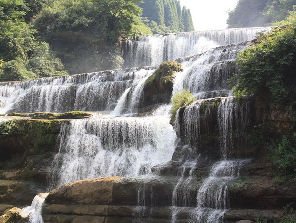 景如其名,此時(shí)游人仿佛置身于一個(gè)一塵不染的世外桃源境地。河水清澈見底,河床怪石林立。游人依修文桃源神舟旅游開發(fā)公司新建的觀光棧道而行,繼金雕崖景點(diǎn)之后,但見犀牛潭景觀——數(shù)股從半崖中涌出的清泉,飛流直瀉,墜落碧綠的犀牛潭中。銀練高懸,水花飛濺,一幅天然的山水畫面。版權(quán)所有山東聊城聊之旅國際旅行社有限公司,轉(zhuǎn)載必究!但凡漂流者經(jīng)過此景,皆有意蕩入泉下,接受泉水的洗禮,或曰洗去晦氣,或曰沾點(diǎn)清泉的靈性。還有一說,此道山泉能賜人以財(cái)運(yùn)。順流而下,在漂流段的終點(diǎn)處,既是桃源風(fēng)景區(qū)的接待處,也是景區(qū)游玩和食宿中心。此處更集中了大自然饋贈桃源河的精品——寬43米、37米落差的梯級大瀑布響水驚天,氣勢宏偉壯觀。站在瀑布下面的觀瀑臺,感受那水霧飛灑的靈氣,更令人心曠神怡。站在去接待中心的小橋上,仰望有波有折,一泉三態(tài)的三疊水瀑布,更有一番獨(dú)特的視覺享受。接待中心被流水纏繞,河灘、怪石、清泉,組合成一組天然的濱河泳場畫面。夜宿桃源度假中心,在潺潺流水的伴奏下,在清新水霧拂面的木屋里進(jìn)入夢鄉(xiāng),必將在你人生的旅程中留下深刻的記憶。