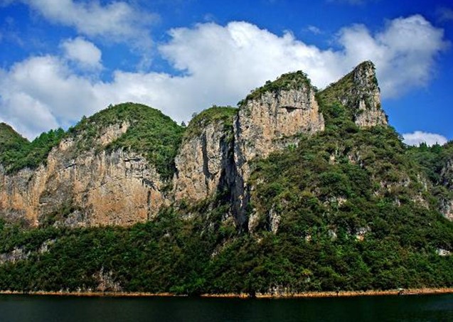 景區(qū)以高峽平湖、瀑泉飛流、喀斯特為主體;山色水韻風(fēng)光迷人。“破鏡重圓”半含水中半露崢嶸;鴛鴦夫妻結(jié)隊(duì)?wèi)蛩樯钜鉂猓黄婷畹娜B水、珠落玉盤直瀉深潭;喊泉神靈有喊必應(yīng),呼之水出、止呼水隱;石峰神形如“孔雀開屏 ”、形態(tài)逼真;“大圣師徒”前往探幽,忙里偷閑,整個(gè)景區(qū)一灣一畫,一步一景,令游人忘返流連......。神秘的下舞陽,不是天堂勝似天堂。鮮明的個(gè)性特征之所撼動(dòng)人心,主要在于下舞陽具有長(zhǎng)江三峽之雄;蜀地蛾眉之秀;桂林漓江之美;陽朔勝景之幽而名冠天下。凡游覽過下舞陽的客人,無不恭維贊譽(yù)其幽谷、山色、水景為天下絕色、嘆為觀止。清代愛國將領(lǐng)林則徐曾在此留下著名詩章:
