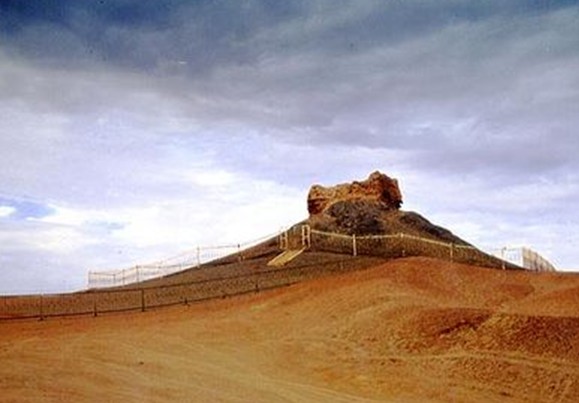 屬唐代護路烽燧,位于火焰山北麓一條干涸河道兩側(cè),七泉湖火車站正南11公里,有小路通遺址旁。七泉湖薩依烽燧為古代穿越火焰山通道上的重要遺址,現(xiàn)外表呈梯形,分上下兩層,每層又分左右兩室,在臺階可登上層瞭望周圍景觀。