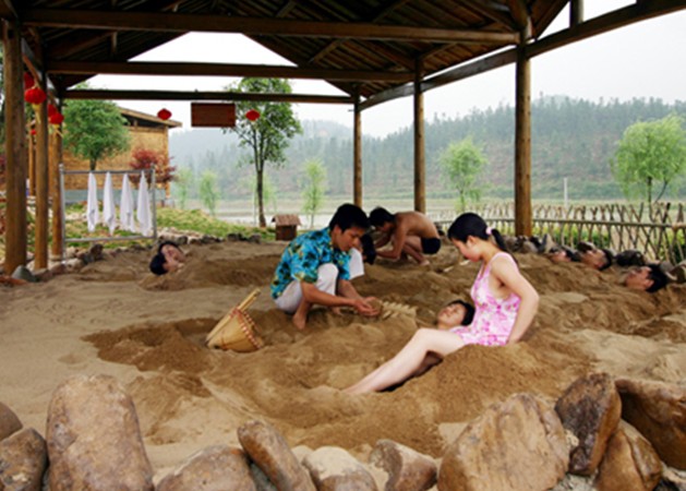 沙療,即沙埋療法,是西北內(nèi)陸沙漠地區(qū)人民利用當(dāng)?shù)氐莫?dú)特氣候條件、地理?xiàng)l件治療疾病的一種方法。就是將病體部位埋入沙中,利用陽(yáng)光、干熱、壓力、磁力〔沙療所沙比外地沙含磁礦高9倍〕的綜合作用治療疾病的一種民間治療方法。用以治療風(fēng)濕性關(guān)節(jié)炎、慢性腰腿痛等,據(jù)說(shuō)有效率達(dá)90%以上。吐魯番市西北16公里處,有兩座黑灰色大沙丘,是理想的沙療地。當(dāng)?shù)氐販馗摺:诨疑城馃崃扛撸持懈缓V物質(zhì),埋沙時(shí)沙粒對(duì)身體有摩擦作用,所以專家認(rèn)為這是一種集熱療、磁療、按摩于一體的綜合理療法。沙療場(chǎng)地系風(fēng)成固定沙丘,長(zhǎng)約200米,寬60-80米,比高8-10米。據(jù)多年氣象資料,每年6月5日至8月20日,吐魯番高溫、干熱,白天氣溫高達(dá)38-42度時(shí),表層沙溫高達(dá)75-82度。每天北京時(shí)間5點(diǎn)后,沙堆10米深處的沙溫仍在60-80度之間。