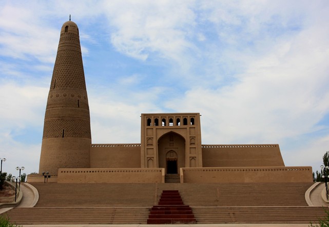 蘇公塔禮拜寺位于吐魯番市東南郊的葡萄鄉(xiāng)木納爾村,在蘇公塔景區(qū)內(nèi)。西距吐魯番2公里,東面與安樂古城相鄰。每逢肉孜節(jié)、古爾邦節(jié),穆斯林群眾,近的三人一群、五個一簇涌向禮拜寺;遠(yuǎn)的,騎毛驢、騎自行車、坐汽車從四面八方云集這里,頒經(jīng)禮圣,祈求福佑。