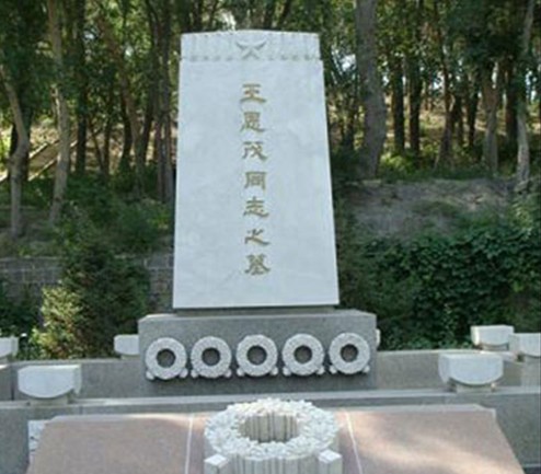 重建后的烈士墓碑,采用北京房山漢白玉,碑身高2.2米,底寬1.4米,頂寬1.28米,厚0.7米。正面是烈士墓碑題字,背面是用漢、維、哈、蒙四種文字鐫刻的烈士簡(jiǎn)歷碑座、墓身份別采用泰山花崗巖和天山花崗巖磨制而成。碑座上精雕細(xì)刻著象征高潔的雪蓮花。晶瑩潔白的墓碑,莊重肅穆。