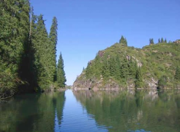 西小天池在天池腳下兩公里處的路旁,水面狀如滿月,池水清冽幽深。天山塔松環(huán)抱四周,池中有松樹的倒影。有時皓月當空,靜影沉壁,清景無限,因而也被稱作龍?zhí)侗淘隆3貍?cè)飛掛著一道瀑布,銀河落地,吐珠濺玉。池上山顛建有間濤亭,玲瓏別致。有人借用中國古代神話,說西小天池是王母娘娘的梳妝明鏡。