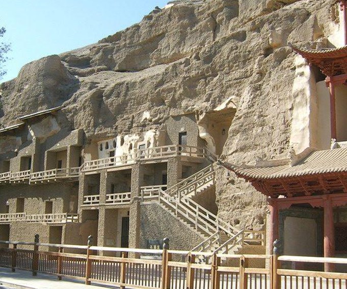 千佛洞依山開(kāi)鑿,原規(guī)模宏偉,現(xiàn)存洞12窟。洞門有的向西,如向西方的佛地祈禱,有的向南,如把陽(yáng)光呼喚,太陽(yáng)照進(jìn)洞來(lái),有的洞內(nèi)為方形,有的為長(zhǎng)方形的基座,佛像卻蕩然無(wú)存,壁畫剝落,現(xiàn)僅在2、3、5、7號(hào)窟,窟內(nèi)還有些朵云紋、纏枝連紋、蔓形紋等。