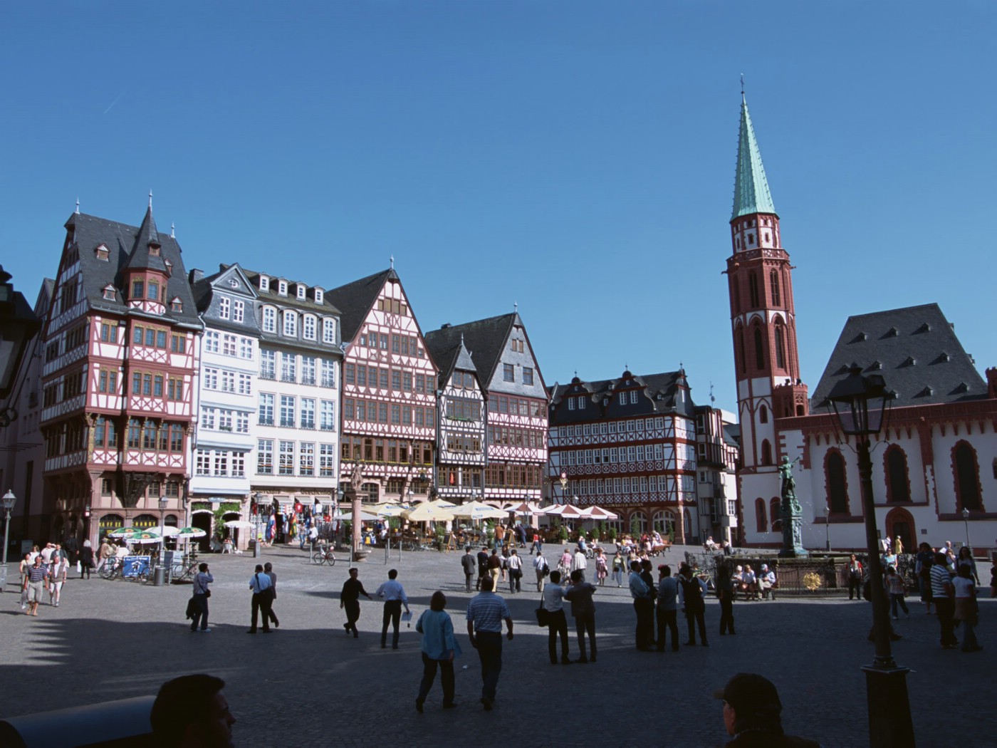 法蘭克人的基督教主教會(huì)議所在地最初位于緬因河唯一的渡口,而法蘭克福這一城市的名字也正因此得名——它源自于拉丁文“Franconofurd”,意思是“法蘭克人的渡口”。便利的交通條件使法蘭克福很快發(fā)展成為一個(gè)重要城市。