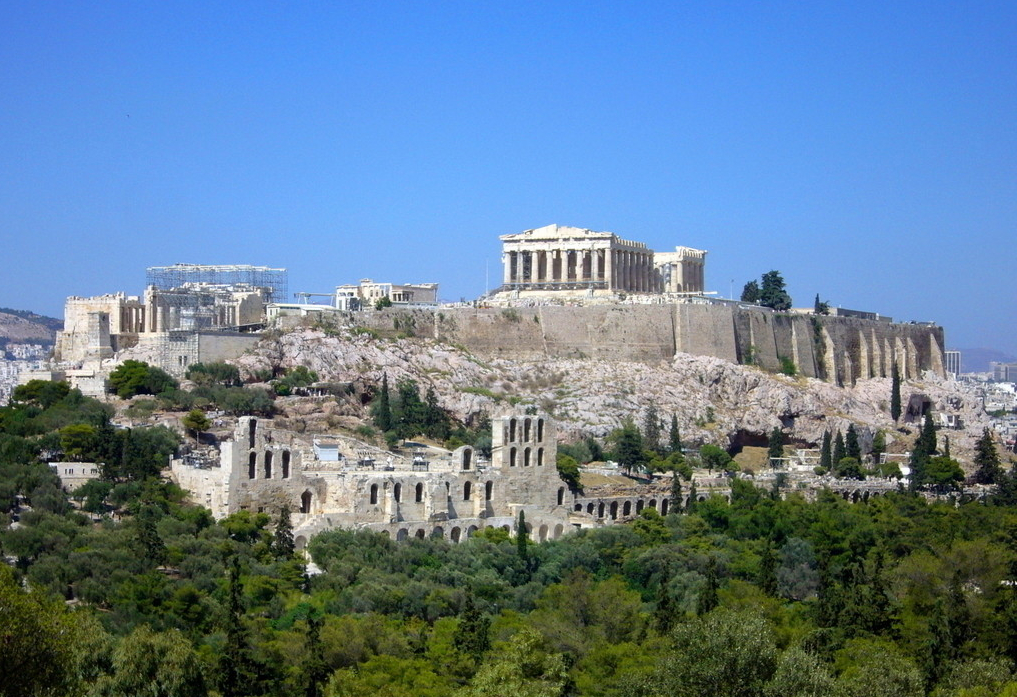 雅典的著名建筑主要坐落在市內(nèi)的三座小山上。339米高的利卡維托斯山上建有國家圖書館、雅典科學(xué)院、雅典大學(xué)(1837年重建)等。尼姆夫斯山上建有天文臺(1842年建)、新王宮(1891-1897建)。舉世聞名的帕提儂神廟坐落在阿克羅波利斯山上。