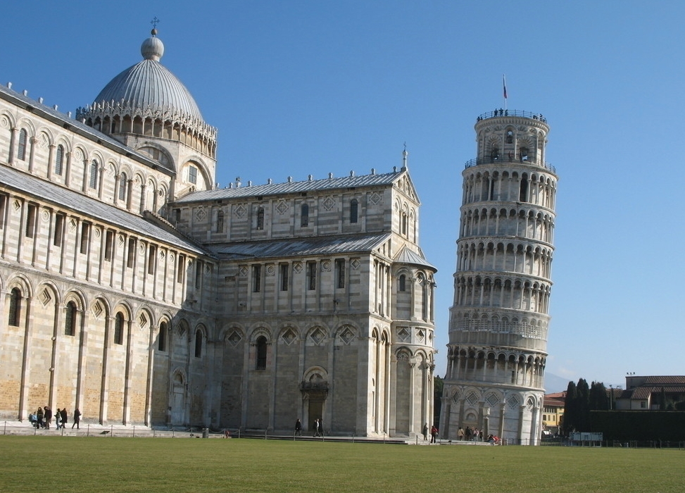 比薩斜塔(意大利語(yǔ):Torre pendente di Pisa或Torre di Pisa)是意大利比薩城大教堂的獨(dú)立式鐘樓,于意大利托斯卡納省比薩城北面的奇跡廣場(chǎng)上。廣場(chǎng)的大片草坪上散布著一組宗教建筑,它們是大教堂(建造于1063年—13世紀(jì))、洗禮堂(建造于1153年—14世紀(jì))、鐘樓(即比薩斜塔)和墓園(建造于1174年),它們的外墻面均為乳白色大理石砌成,各自相對(duì)獨(dú)立但又形成統(tǒng)一羅馬式建筑風(fēng)格。