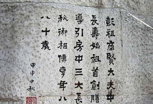 北魏酈道元《水經(jīng)注》“獲水”條云:(彭城)城之東北角,起眉樓於其上,號曰彭祖樓。《地理志》曰,彭城縣,古彭祖國也。《世本》曰,陸終之子,其三曰籛,是為彭祖。彭祖城是也。下曰彭祖冢。彭祖長年八百,綿壽永世,於此有冢,蓋亦元極之化矣!
