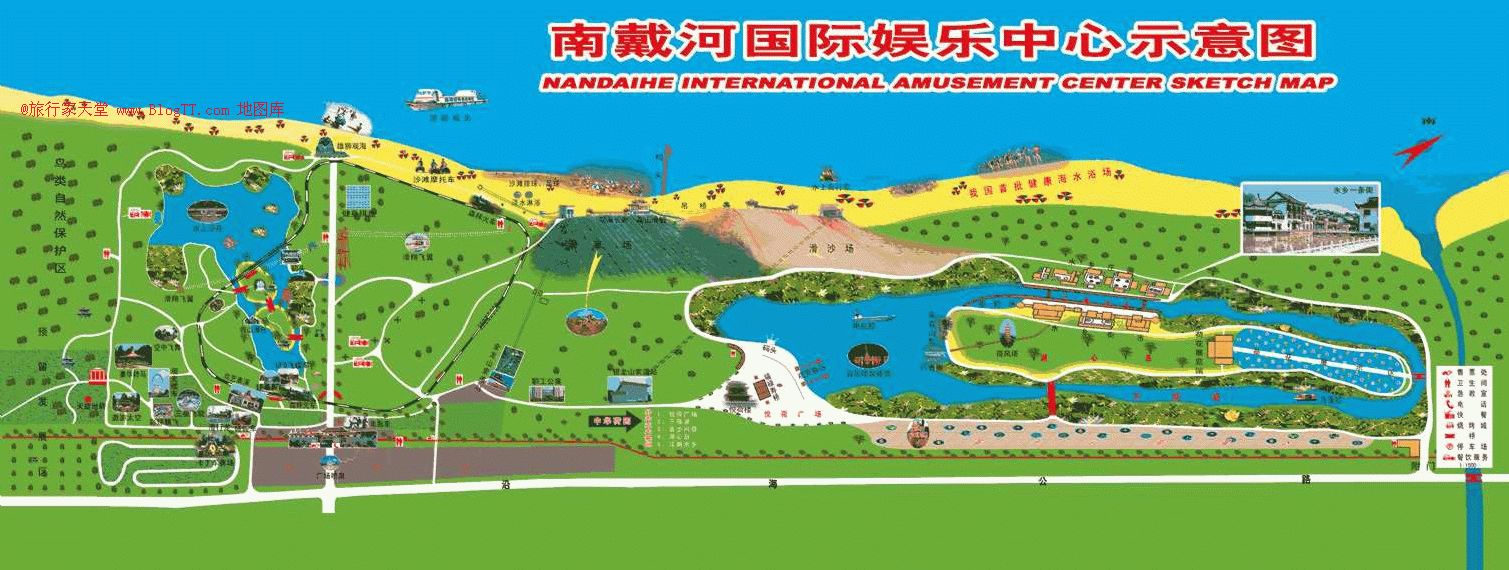 景區(qū)地圖南戴河國際娛樂中心旅游資源十分豐富,自然資源得天獨厚,一面是蔚藍的大海,三面是茂密的森林。這里灘寬水清,沙軟潮平,空氣清新,林木蔥郁。海水浴場是“國家首批健康海水浴場”,空氣質量達到了國家《環(huán)境質量標準》GB3095-1996表中一級質量標準,環(huán)境噪聲質量達到國家O類標準。園中有各種鳥類近百種,現(xiàn)已被河北省列為鳥類自然保護區(qū),2004年通過ISO-9001質量和ISO-14001環(huán)境管理體系認證。